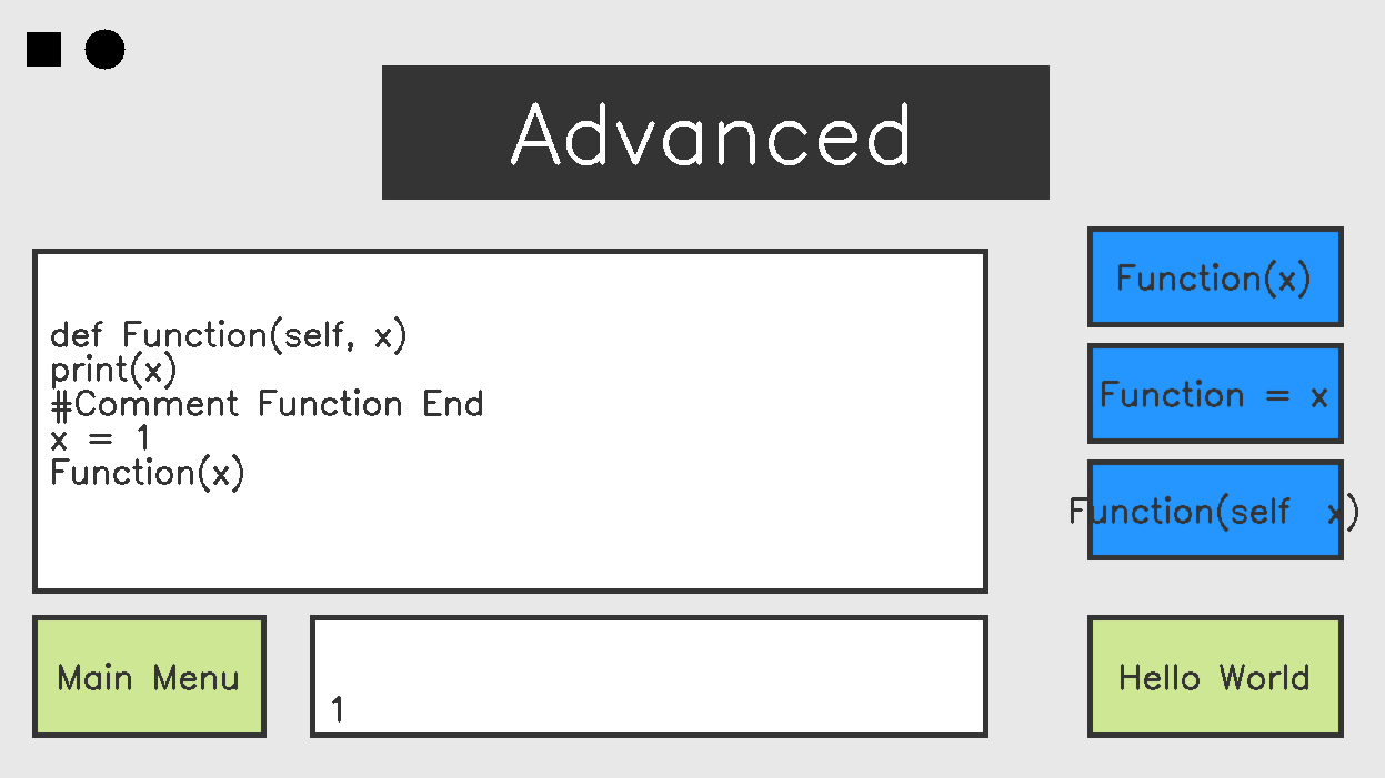 how the user selects buttons. The program is made to help people learn how to code in python, through the use of