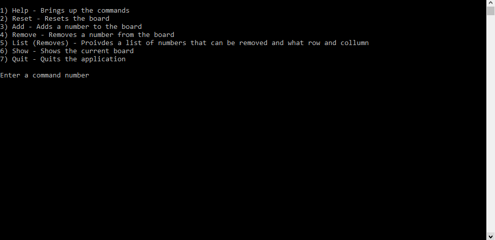 Thus I instead put 3 static boards in the program and allowed the user to choose between the three and the program instead