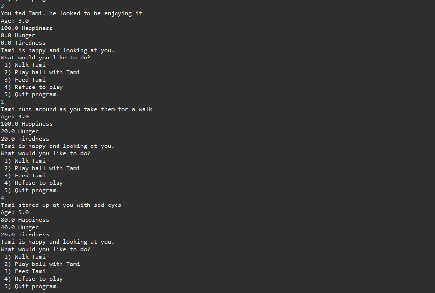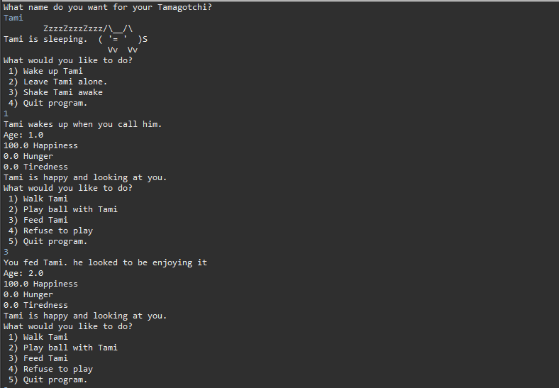 The Tamagotchi changes it's mood and scenarios based on its current health stats, these consisted