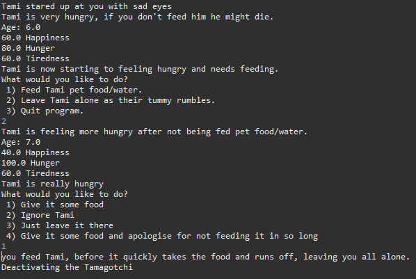 There are certain points in the program where if the Tamagotchi has lost so much of